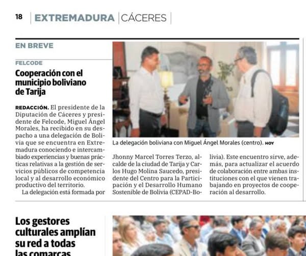 España… Extremadura, reforzando una relación de cooperación de 25 años del CEPAD en favor del desarrollo de Bolivia. Entrañables, Mane Rodriguez Tabares, Antonio Fuentes, Miguel Angel Morales Sanchez, Alfonso Beltran Muñoz.
