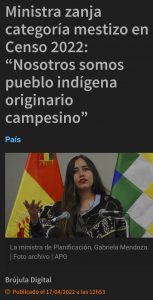 El debate sobre este tema no está cerrado… yo no soy originario indígena campesino, y el término mestizo no existe en la nomenclatura de los censos, entonces, ¿que soy?