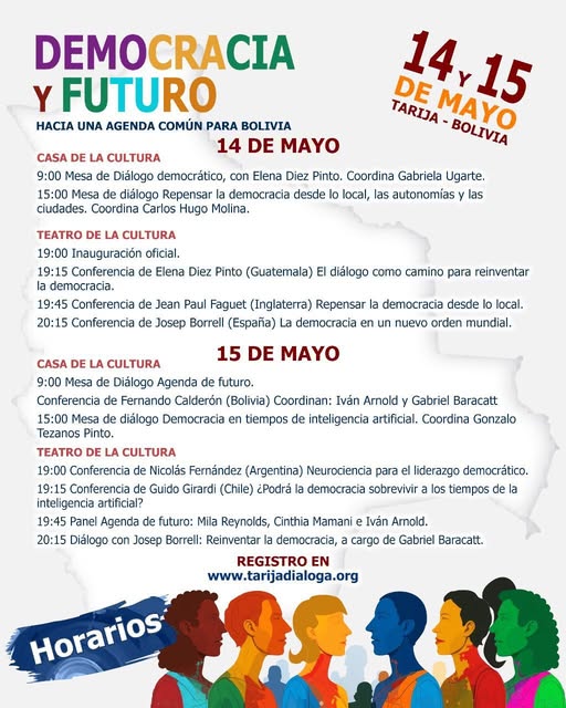 Será un gusto compartir con el académico inglés Jean Paul Faguet, experto en descentralización y democratización, el exjefe de la diplomacia europea y ex presidente del Parlamento Europeo, Josep Borrell. Elena Díaz, guatemalteca experta en resolución de conflictos y el maestro Fernando Calderón Gutiérrez, el investigador boliviano de las Ciencias Sociales.