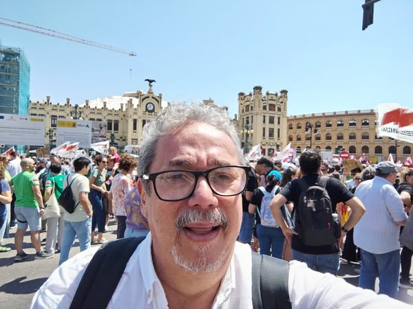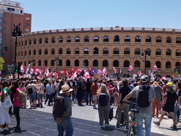 Boliviano con suerte, llegando, me sumo a una marcha que pasa por la estación…